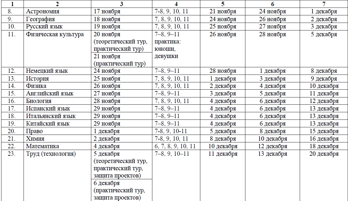 - Обучающиеся 7–11 классов, набравшие на школьном этапе необходимое для участия в муниципальном этапе олимпиады количество баллов, установленное организатором муниципального этапа олимпиады по каждому общеобразовательному предмету и классу.