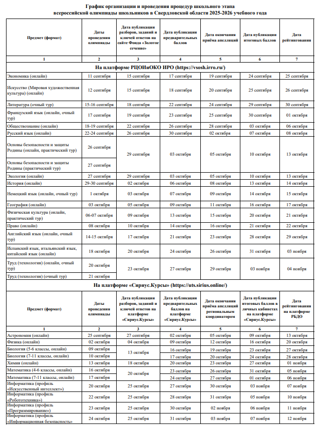 График организации и проведения процедур школьного этапа всероссийской олимпиады школьников 2025-2026 учебного года