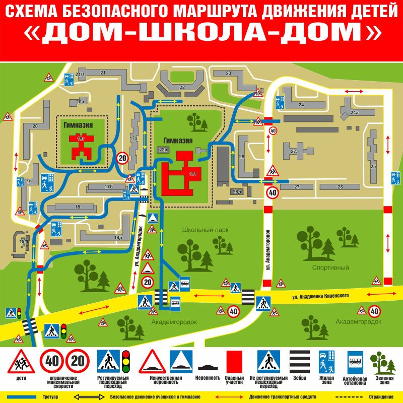 Примерная схема безопасного маршрута "Дом - Школа - Дом"